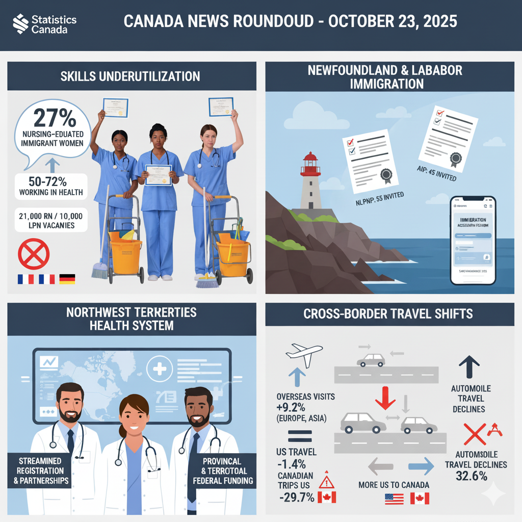 A comprehensive Statistics Canada study released on October 22, 2025, highlights critical challenges facing immigrant women with nursing credentials in Canada’s healthcare workforce. The research reveals that while immigrant women constitute 27% of Canada’s nursing-educated population, many internationally educated nurses face substantial barriers to appropriate employment. The 2021 Census data analysis shows that only 50-72% of foreign-educated immigrant nurses work in health occupations, with significant variation across racialized population groups. Regulatory recertification difficulties and credential non-recognition contribute to this underutilization, even though Canada faced 21,000 registered nurse and 10,000 licensed practical nurse vacancies in early 2025.